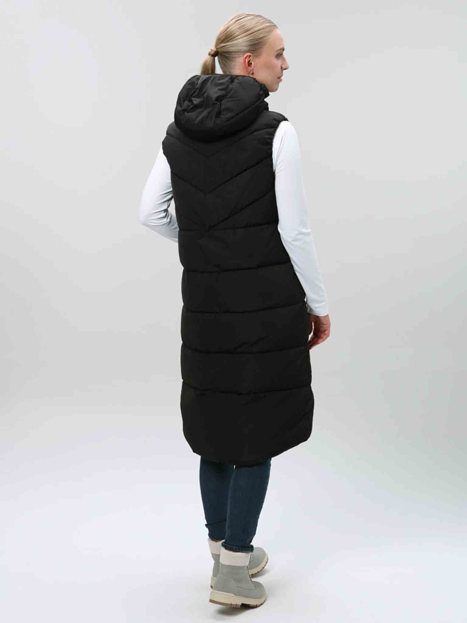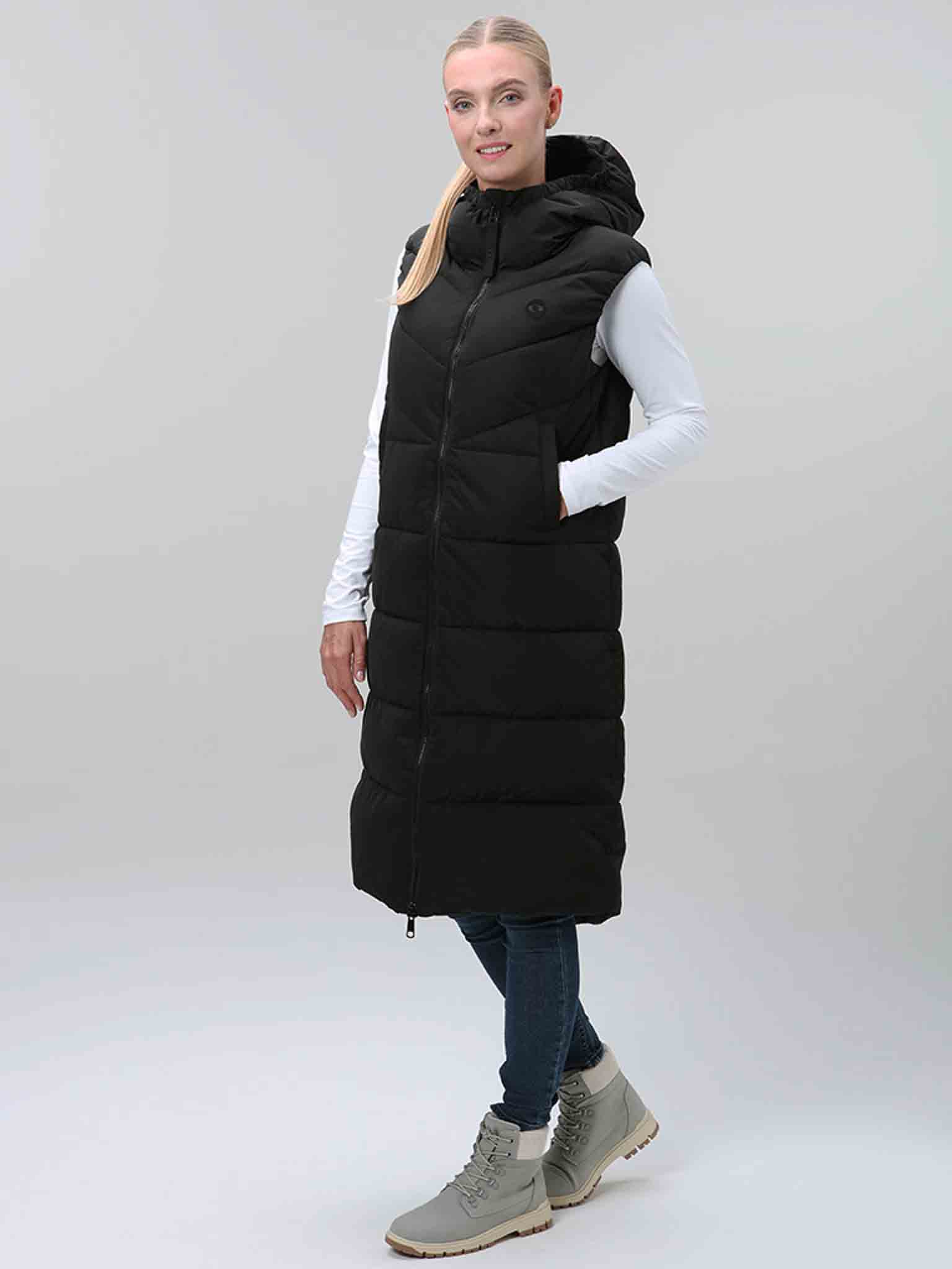 CLW25108-V21VDámská dlouhá vesta LOAP Tanja je ideální pro chladnější dny, kdy ještě nepotřebujete bundu. Zateplení z dutých vláken Polytherm zajistí příjemný tepelný komfort a pohodlí.