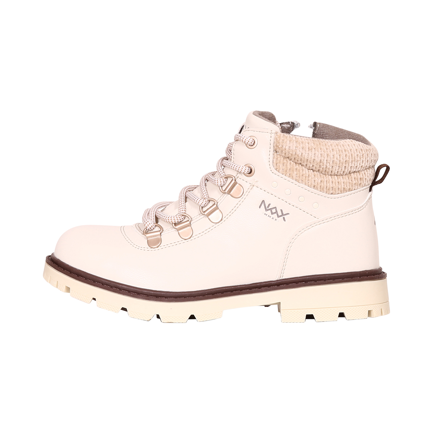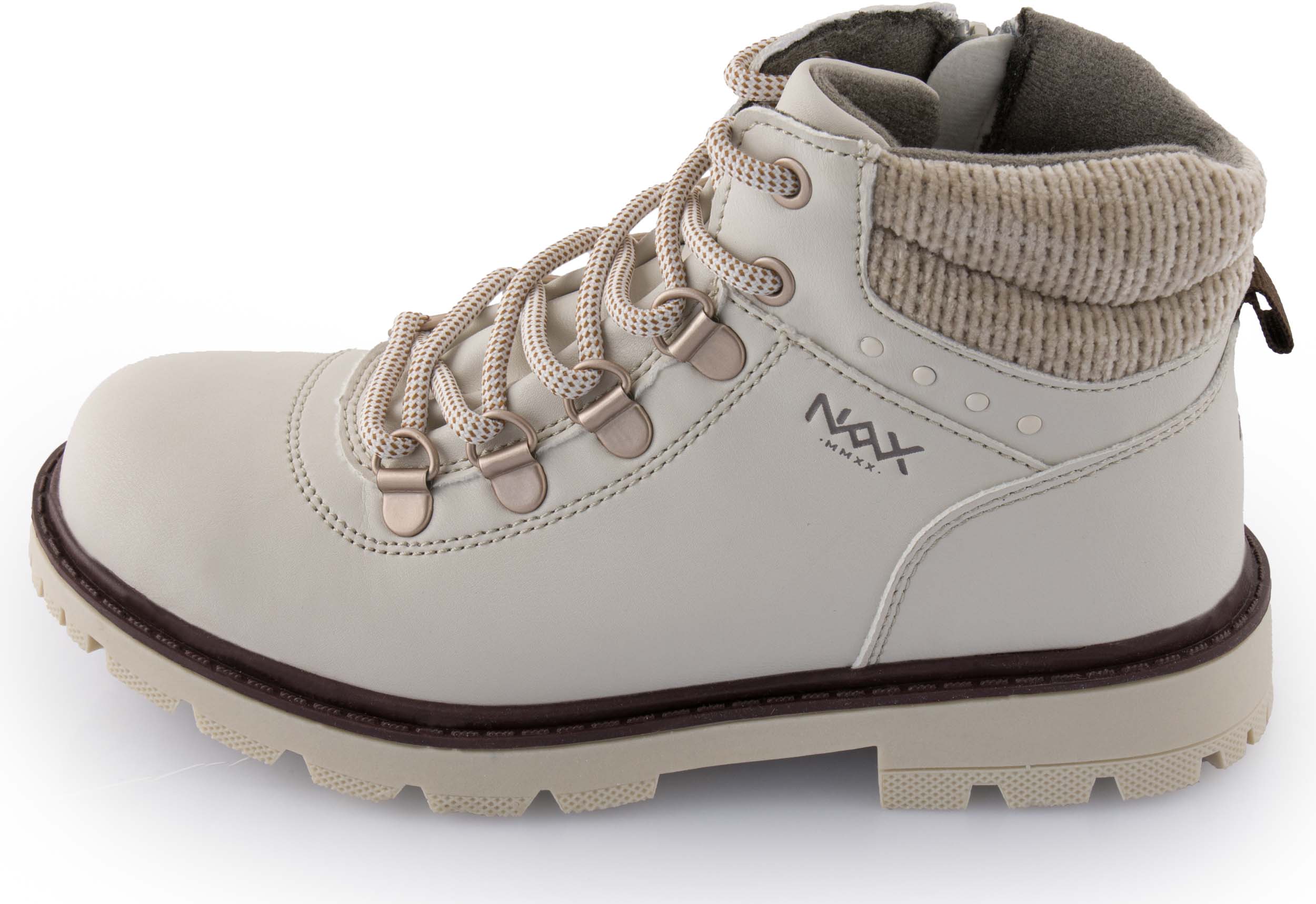 Dětské zimní boty Nax Falbo jsou vhodné na období od podzimu až do jara. Vaše dcerka je může obout na cestě do školy, na procházku do města i do parku. Zapínání je řešené pomocí zipu z boční strany, což je o dost praktičtější než zavazování tkaniček. Kolem kotníku najdete měkké lemování. Tkaničky s kovovými nýty fungují jako ozdoba. Na patě je poutko, které také usnadní obouvání. Odolná podešev s hlubším vzorkem je ideální pro zimní období. Uvnitř najdete velmi komfortní stélku. Stylové boty zdobí jemné logo Nax.