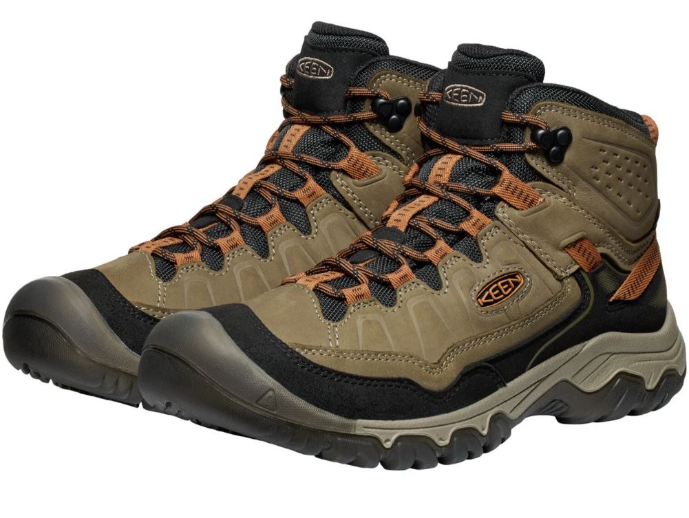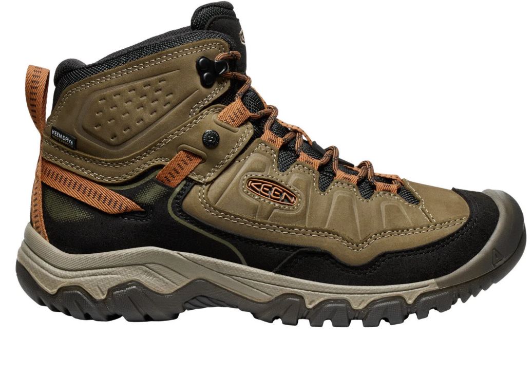 1028987Pánské boty KEEN TARGHEE IV MID WP M v barvě Dark Olive/Gold Flame jsou nejnovější generací ikonických trekovek KEEN. Prémiový nubuk, odolná TPU podešev a technologie LUFTCORE zajišťují skvělé odpružení, stabilitu a pohodlí i při delších túrách.