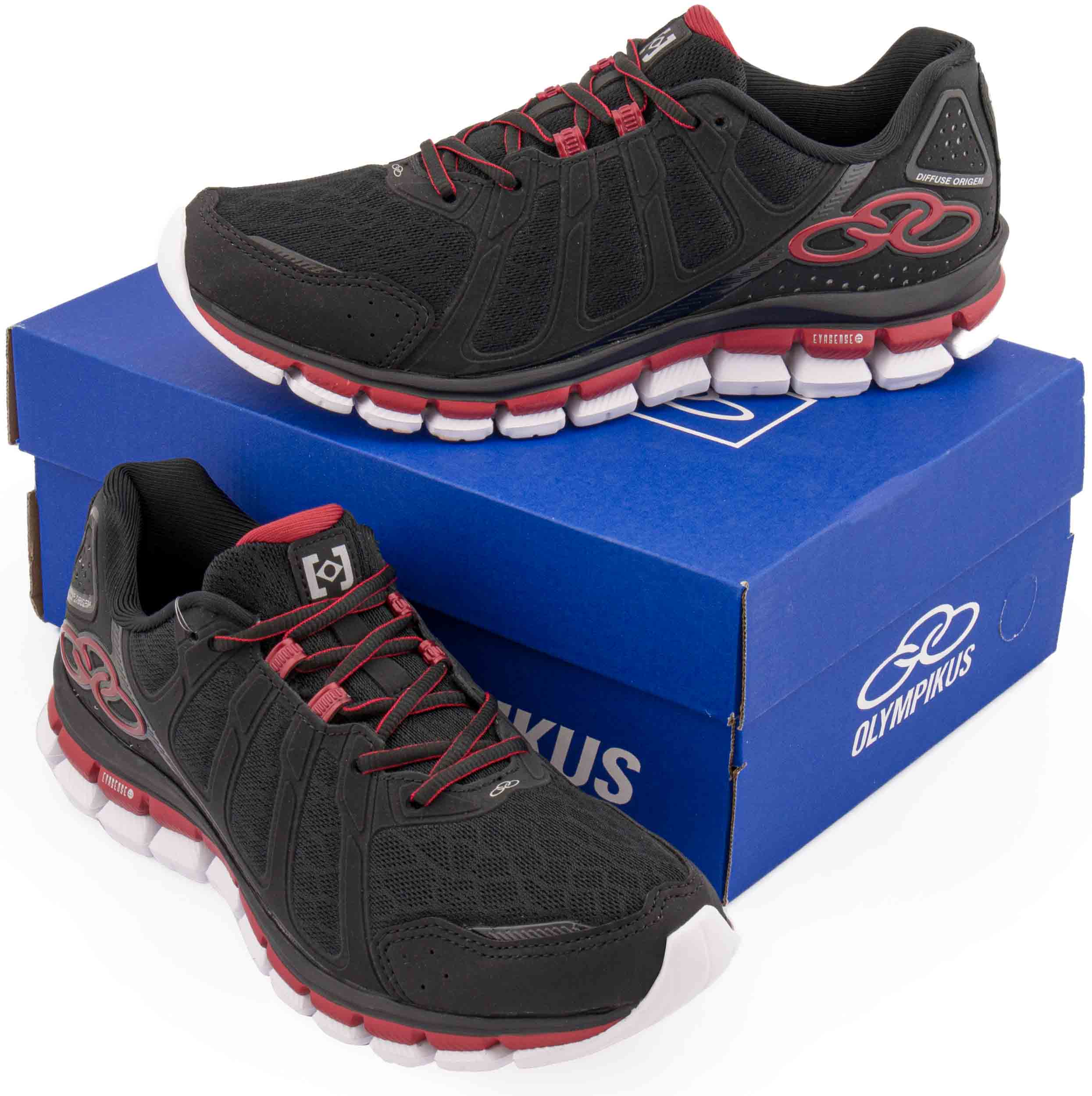 Atraktivně vyhlížející model sportovních bot Olympikus Diffuse Origem je určen pro rozličné sportovní aktivity. Boty jsou vyrobeny z lehkého textilního úpletu husté a výborně prodyšné síťoviny s pevnými segmenty pro výbornou laterární oporu, jež je napojena ke šněrování s plochými tkaničkami, přičemž chybět nesmí ani zadní pozice očka pro uvázání sportovní smyčky, která eliminuje zaškrcení návrtu. Špička boty je opatřena pevnou obsázkou. Velmi dobré tlumení dopadů je zajištěno díky použití speciálně tvarované a širší pěnové mezipodešvi z materiálu EVA Sense o dvou vrstvách. Tato pěna vyniká lepší dynamičností a také odlehčeným provedením. Obecně odlehčení napomáhá také fakt, že materiál mezipodešvi slouží také jako samotná podrážka. Boty tak můžeme doporučit do fitness a dynamická cvičení plná skoků.